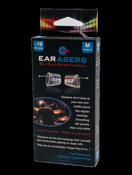 Earaser dämpar 19dB jämnt över frekvensregistret och är mycket bekväm att använda.