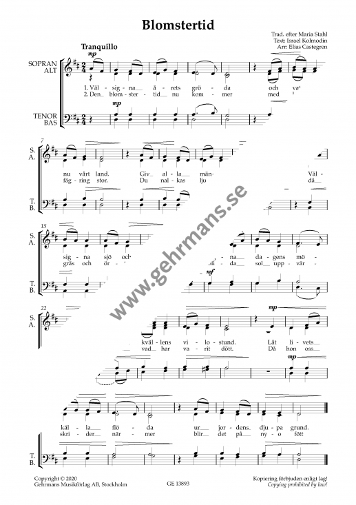 Fint arr av melodin Blomstertid,också känd som Den blomstertid, men här med en annan melodin än den i psalmboken. För kör a cappella.
