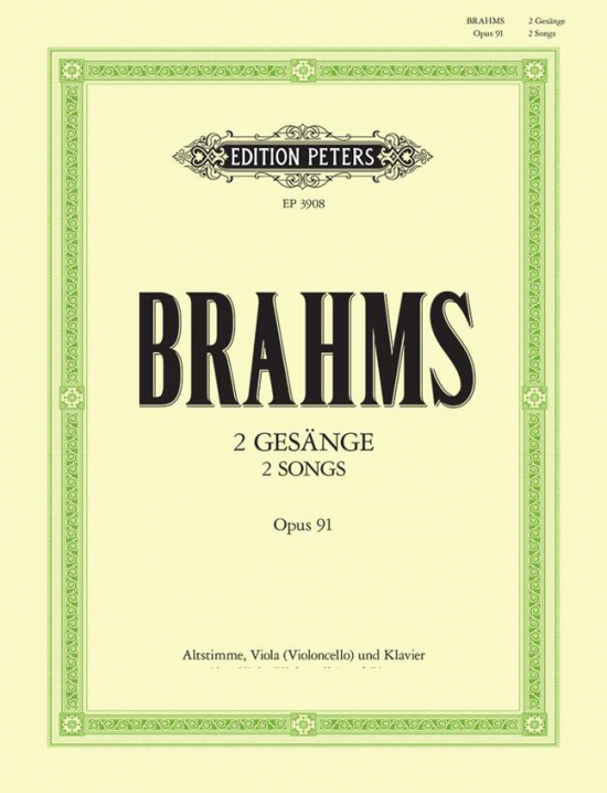 | Orginaltitel: | 2 Gesänge opus 91 , 2 Songs op 91 , Alto Vice with Viola (or Violoncello) and Piano , Altstimme mit Viola (oder Violoncello) und Klavier , Two songs Opus 91 , Zwwi Gesänge Opus 91 |