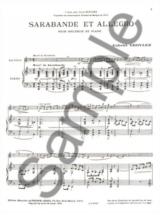 Grovlez::Sarabande et Allegro pour Hautbois et Piano