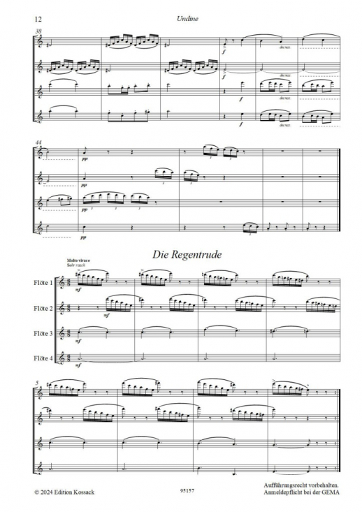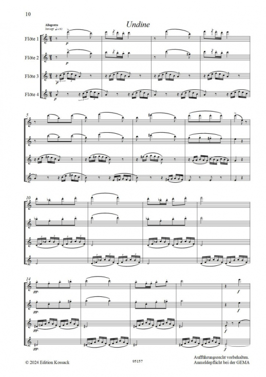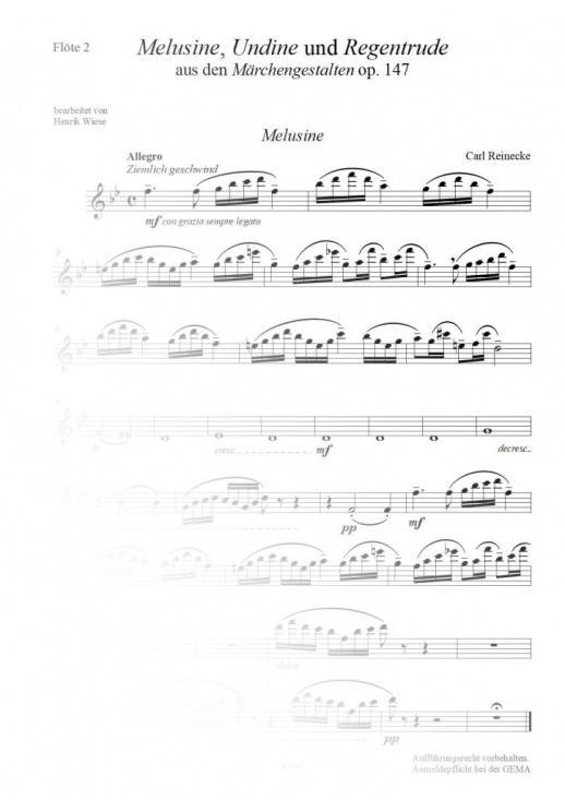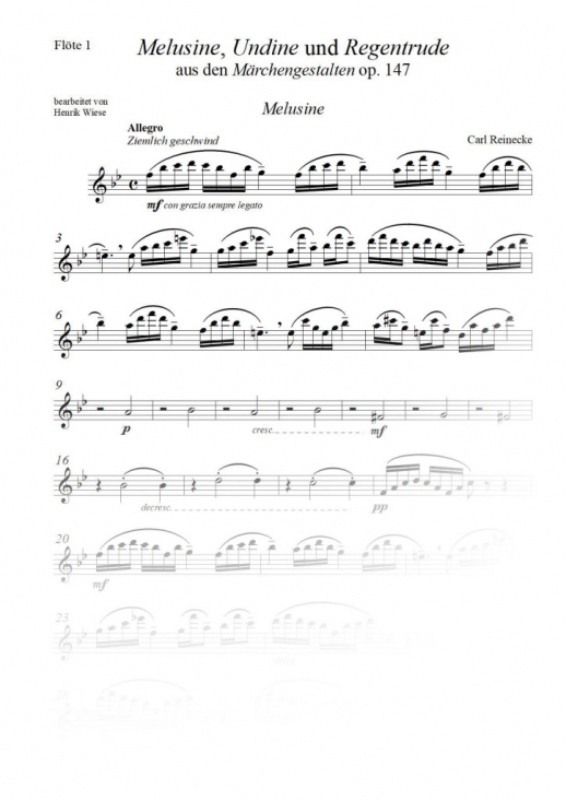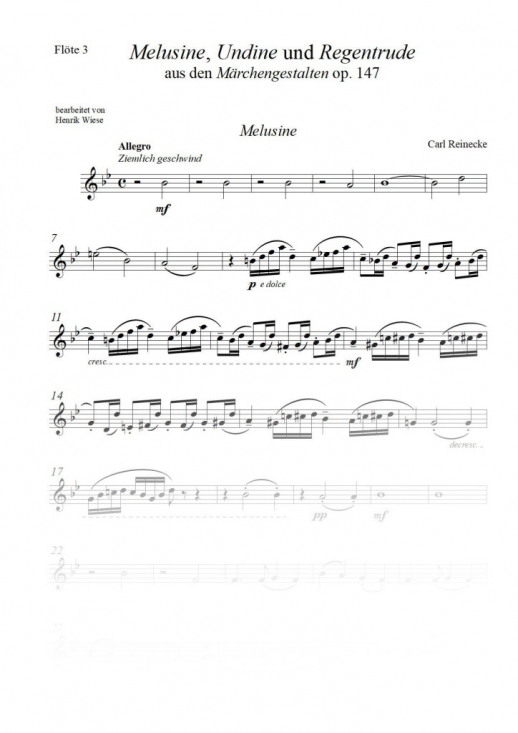 Originalmusik av Carl Reinecke, i arrangemang för fyra flöjter (tvärflöjter).
