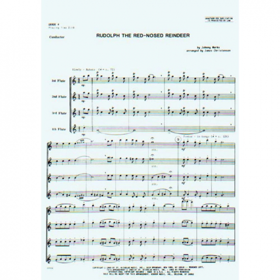 Rudolf med röda mulen arrangerad för fyrstämmig flöjtensemble.